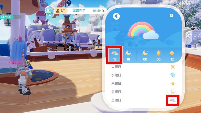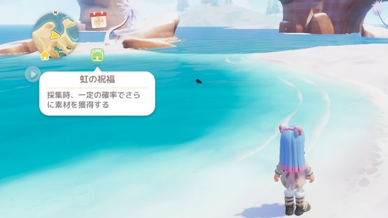 虹の日は「虹の祝福」というバフが付きます。採集する際、一定の確率でさらに多くの素材を獲得することができます。