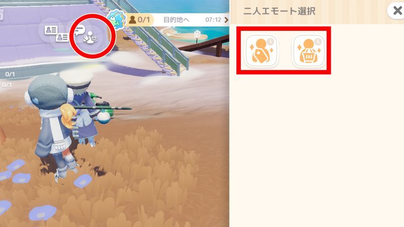 プレイヤーに近づき、エモートマークをタップします。左側の代理販売マークを選択します。