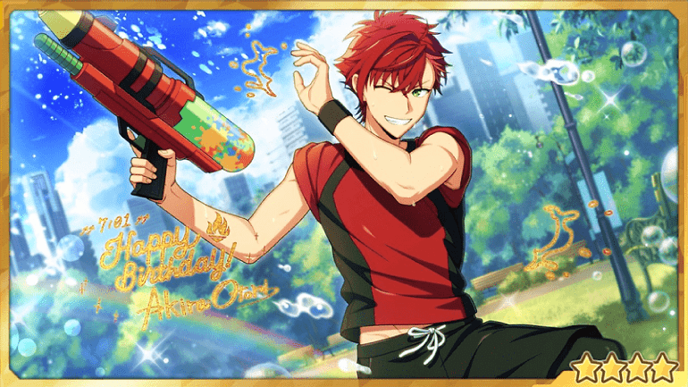 | 「ふふん♪ 天才のオレを仕留めようなんて100年早いぜ!」 年に一度のバースデー。『ヒーロー』の特別な思い出を一枚に収めて……。 ハッピーバースデー、アキラ! | |