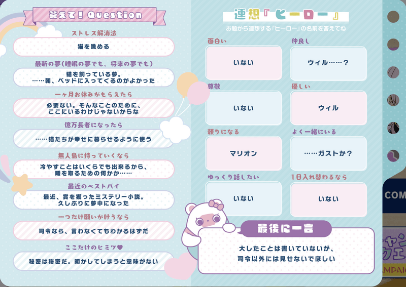 ![]() レン | ![]() ガスト | ![]() ヴィクター | ![]() マリオン |