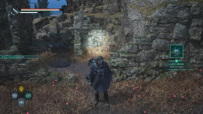 - シノン湖(Lake Cynon)で光るアイテムを調べ、失われた鍵の手記(Lost Keys Note)を入手する。