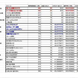 123年まえ ID:usjonpr4各ステージの経験値量と1スタミナ当たりの経験値まとめてみました