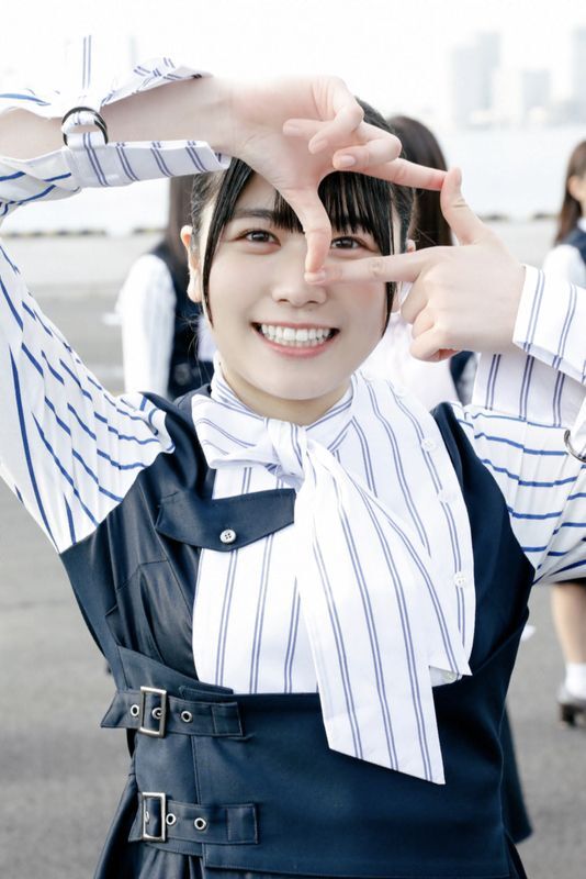 | 「ソンナコトナイヨ」ミュージックビデオ撮影にて、曲中のポーズをきめる丹生明里 |