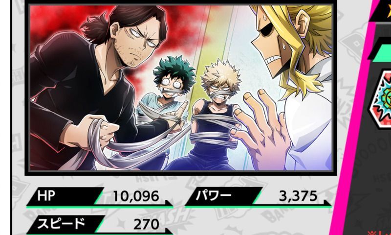 ・条件が限られているため汎用性は低いが、私服爆豪や英傑爆豪と相性が良いためこれらのキャラクターを持っている人は優先的に装備させよう。