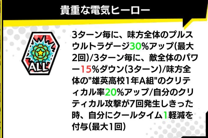 ・祭り上鳴はアクションスキルPU技共に全て感電を所持しており、中でも「高圧放電」は全体攻撃かつ必中のためとても拘束性能に優れたアタッカーとなっている。