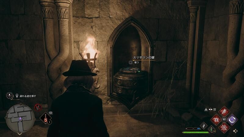 | 2 | 3つの燭台に火を付けて隠し通路に入る |