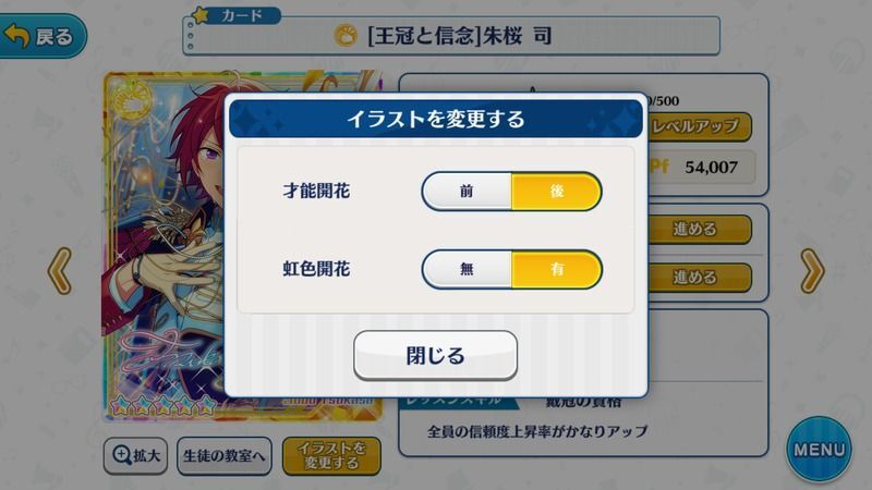 (才能開花前後のイラストはver1.1.6.3にて追加/虹色開花前後のイラストはver2.2.3にて追加)