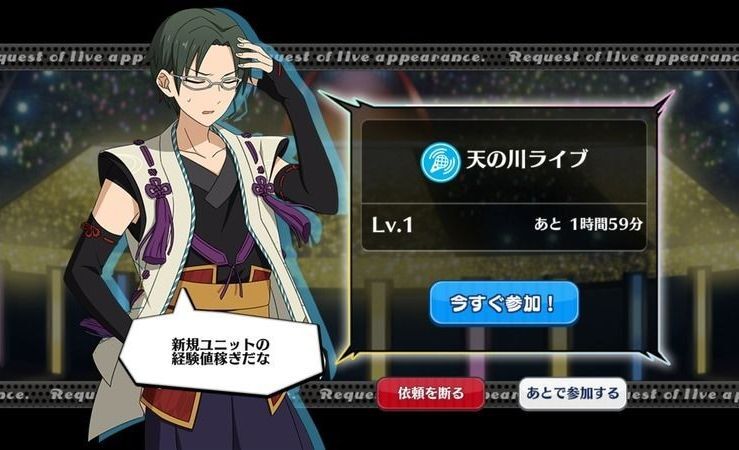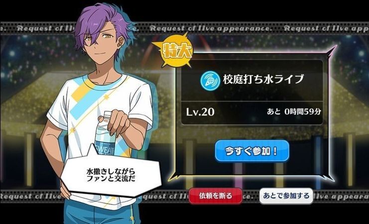 | 通常ライブ、特大ライブを無事達成すると、一定の確率で発生。 |