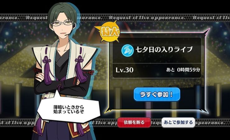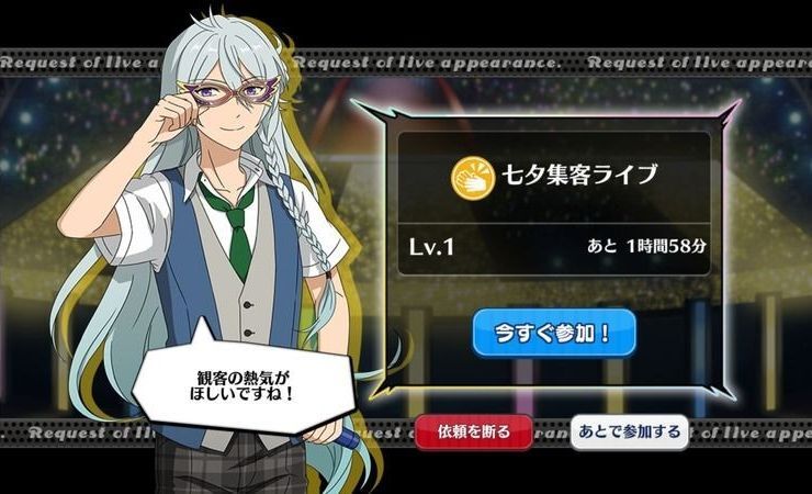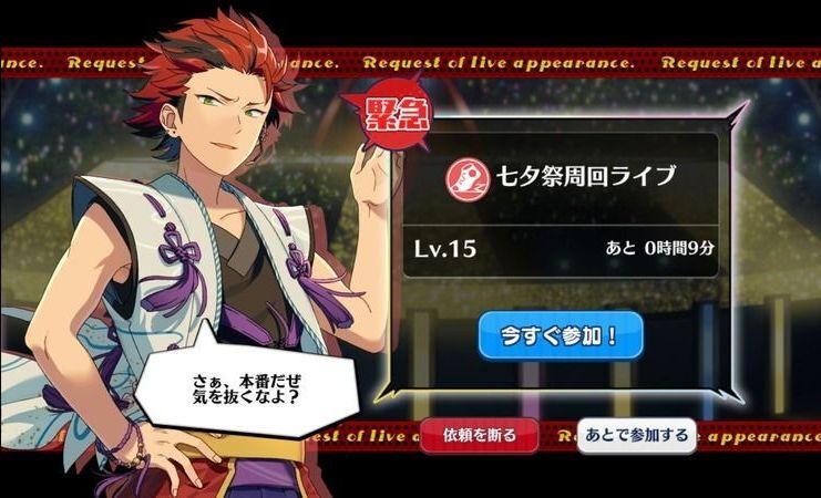 あんスタ(あんさんぶるスターズ!)のイベント「挑戦!願いの七夕祭」のカード一覧とイベントの詳細まとめです。イベントボーダーやイベントの走り方、カード一覧を掲載しています。ぜひ参考にして下さい。