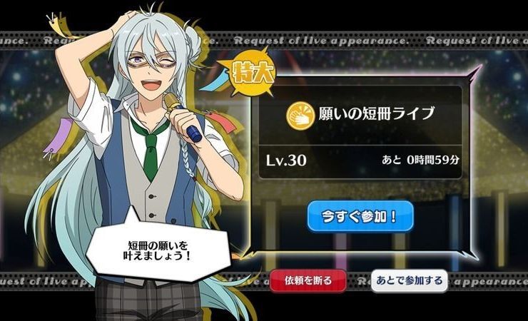 | 特大ライブ | Lv30 | 1時間 | 4LP以上消費で次回1レベルダウン |