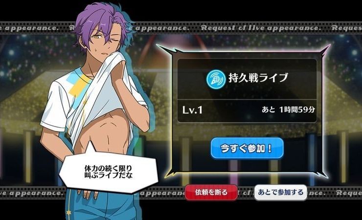| 登場 | 体力の続く限り叫ぶライブだな |