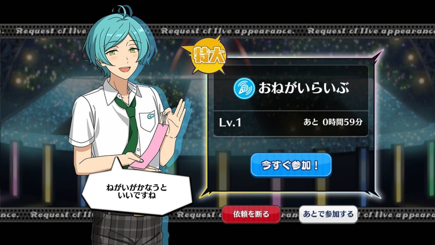 | 特大ライブ | Lv30 | 1時間 | 4LP以上消費で次回1レベルダウン |