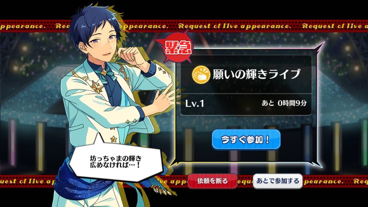 | 緊急 ライブ | 1,000,000人 | 15,000イベントpt | 18,000イベントpt 200プロデュースpt |
