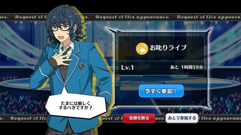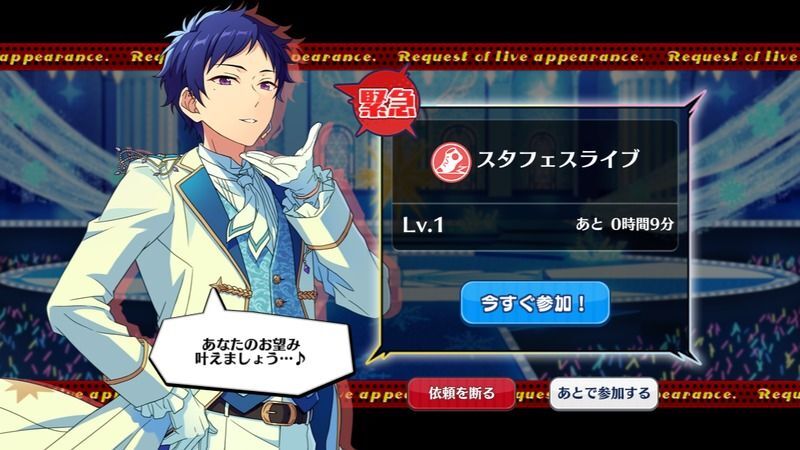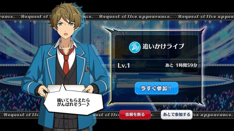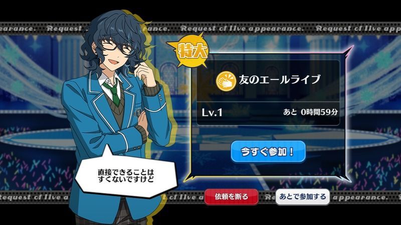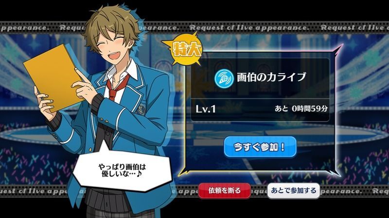 | 通常ライブ、特大ライブを無事達成すると、一定の確率で発生。 |