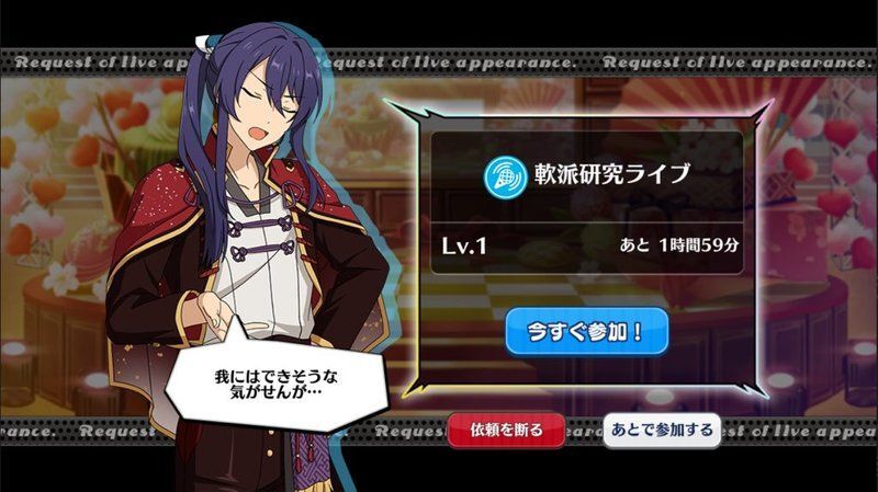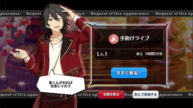 | 通常ライブ、特大ライブを無事達成すると、一定の確率で発生。 |