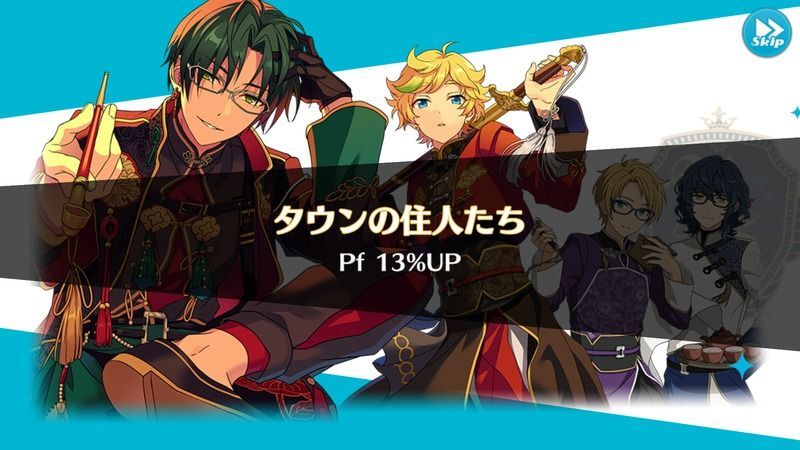 また、「スカウト!チャイナタウン」に登場する4人を同じライブユニットに揃えると、「交響*祝福のマグノリア」の期間中のみ発生する限定ユニットスキル「タウンの住人たち」が発動します。