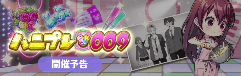 ![]() 第7回ハニプレ009 | 04/09(金)19:00 | 04/16(金)15:00 |