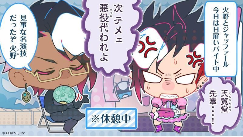 | 天覧堂 ジャッファールが開発したメガネを装着する、 火野 進示、薄氷 世人、灰羽 紙乃たち みなさまも目を大切に… | |