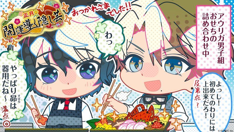 | アウリガメンバーで開く新年会のために 昴と摩耶はおせちづくりを頑張ったようです | |