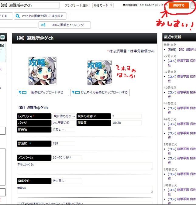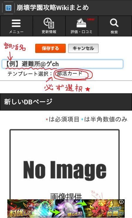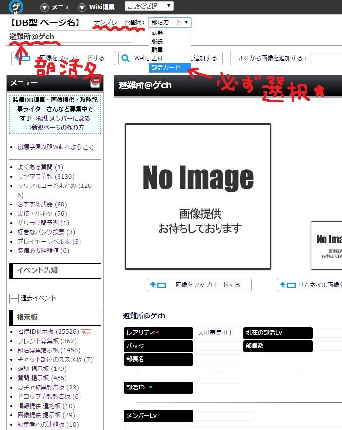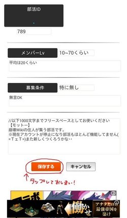 ※同じギルド名や攻略(武器)ページが既にある場合や半角・特殊な記号がある場合は作成できないので、「部活名@大募集!」など工夫をしてください。