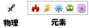 序盤の武器はほぼ物理武器(剣のマーク)。ですが、敵の中には物理に耐性を持っているものがいます。もし育てている武器が物理武器ばかりならば、1つくらいは元素武器(炎や雷のマーク)を育てておくと良いでしょう。(逆に元素に耐性を持っている場合もあるので物理も同じくらい大切です)