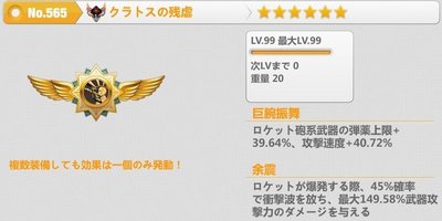 ロケットが爆発する際、45%確率で衝撃波を放ち、最大80%(149.58%)武器攻撃力のダメージを与える