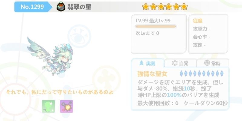 ダメージを防ぐエリアを生成、但し与ダメ-80%、継続5秒。終了時HP上限の50%のバリアを生成