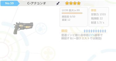 普通ゾンビ娘に命中時15%確率で瞬殺する(一部クエストでは無効)