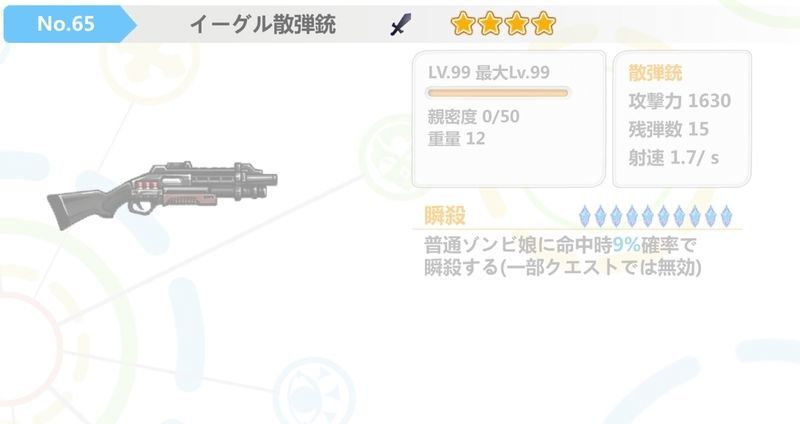 普通ゾンビ娘に命中時6%確率で瞬殺する(一部クエストでは無効)