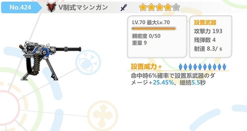 命中時6%確率で設置系武器のダメージ+12(15.45)%、継続4秒
