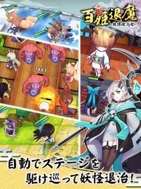 簡単操作の放置型RPGになっており、バトルは基本オートで進行します。個性豊かな式神たちと共にあやかしを退治しましょう。
