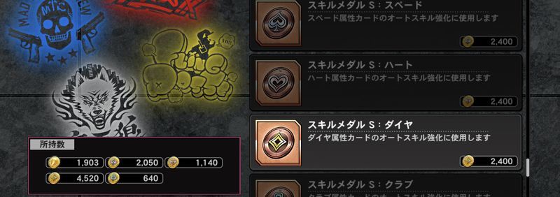 オートスキルの強化にも専用のアイテムが必要になります。スキル強化のアイテムは現状ショップでの入手が主になります。