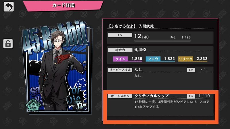スキル「クリティカル」持ちのキャラはスコアアップの倍率が高い変わりにミスをしやすくなってしまうという効果がついています。音楽ゲームになれないうちはあまり編成しないのが良いでしょう。