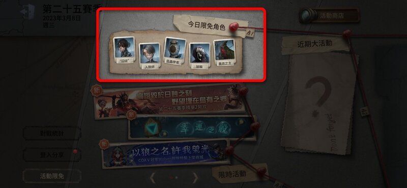 可以在角色限免日在自訂及匹配模式體驗還未擁有的求生者、監管者一天(系統時間0:00~23:59)。