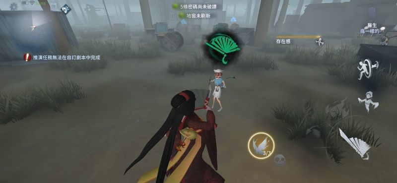 若求生者吃到燕尾蝶面向紅蝶時,求生者頭上會出現綠色扇子標記代表無法使用剎那生滅或者該技能會被打斷。
