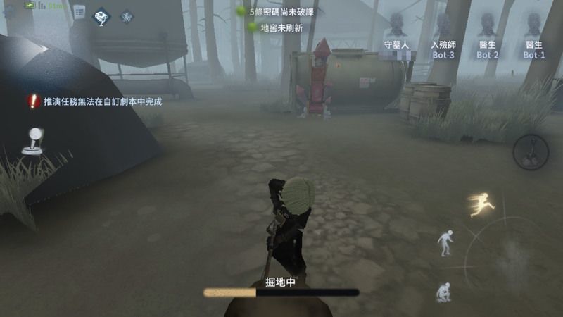 6.遁地後接近廠長娃娃/窺視者,依然能被監管察覺,而且娃娃跟炭火也會追遁地的守墓人