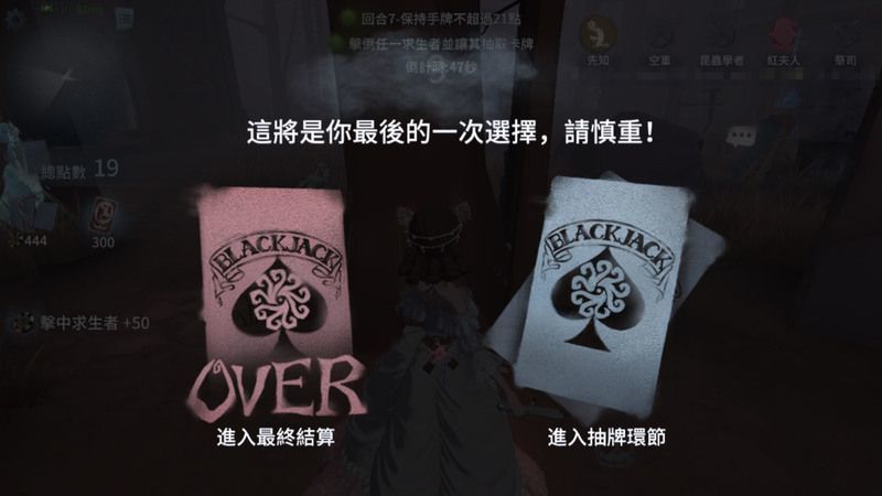 | 該回合的其他求生 | ・利用道具更換21點玩家的手牌 ・妨礙21點玩家以幫助監管抓他 |