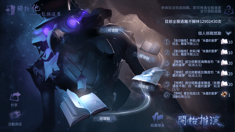 | 【限時】累計完成5次“未盡的噩夢”活動玩法任務 |