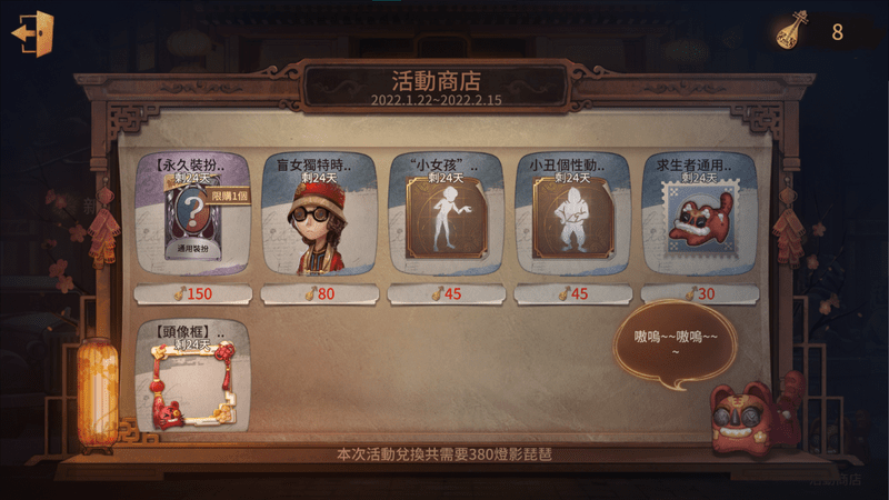 2/1~2/11期間可透過對戰獲得燈影琵琶,勝/平/負分別可獲得5/4/3個燈影琵琶。