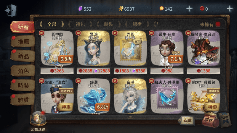 | 破譯密碼機達到300%或 使用監管者淘汰6名求生者 2022/1/28開放 | 【臨時裝扮】通用奇珍時裝(3天) |