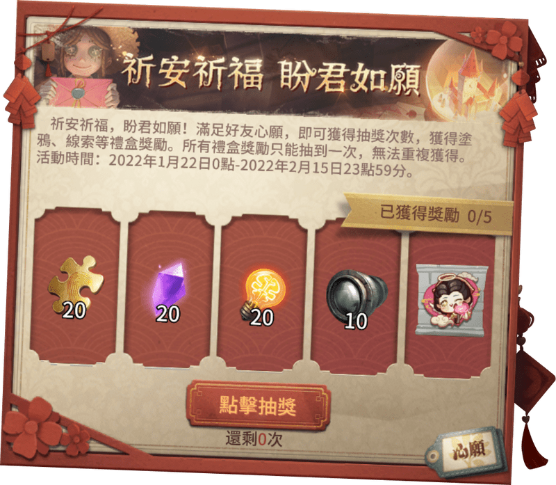 祈安祈福,盼君如願!滿足好友心願,即可獲得抽獎次數!