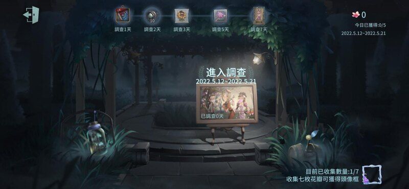 每日集齊5枚古紋雕花可以進行1次調查(拼圖遊戲)。