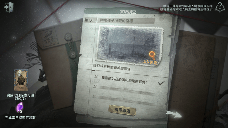 點選開始調查後會進入活動地圖,左上角會顯示種子所在方位。