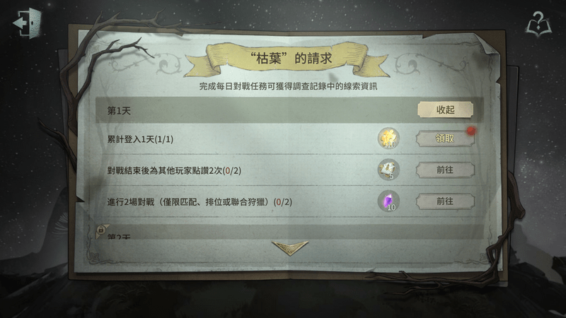 | 獲得2場遊戲平局或勝利 | 【臨時身分】通用角色(3天) |
