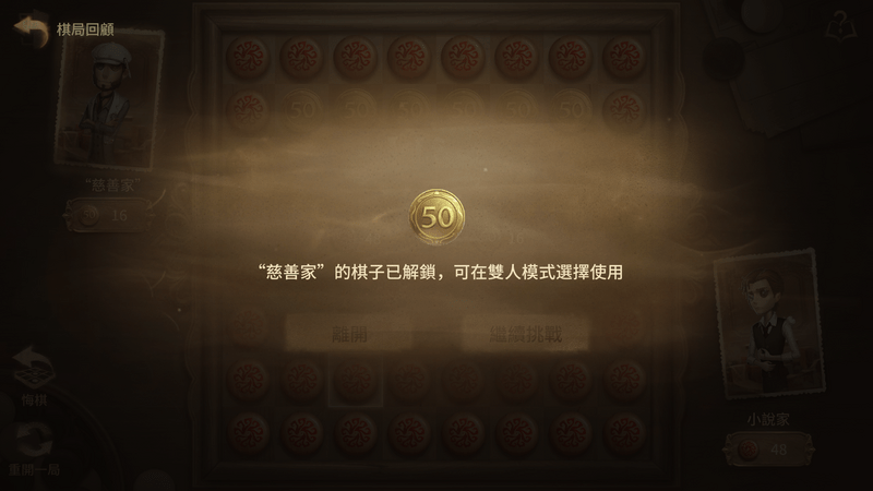 劇情模式下,可依序挑戰不同角色,勝利即可獲得該角色的棋子樣式,並能挑戰下一位角色。越後面的角色越強,到了神秘人更是強度翻倍。