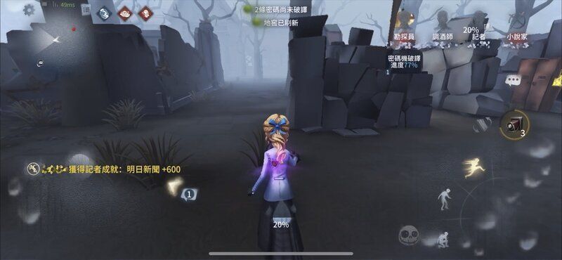 | 冷卻時間:6秒 使用數量(牽制/救援視角):3/1 持續時間(牽制/救援視角):14/14秒 隨身攜帶相機,記者可以主動切換拍照模式生成不同視角下的幻影。 【牽制視角】 幻影會自動移動到未放下的木板一側,監管者處於可被擊中的位置時會自動放下木板,被幻影砸暈的監管者恢復速度增加30%,放下木板後幻影消失。當木板提前被放下幻影會自動消失。監管者摧毀被幻影放下的木板速度減少20%。幻影與隊友的距離小於12米時,持續時間消耗速率增加50%。幻影存在過程中再次點擊技能鍵可以主動使其消失。 若附近沒有可選擇的木板,幻影會自動向正前方移動直至撞到障礙物停下。 【救援視角】 當有隊友被放上狂歡之椅且距離記者小於25米時,幻影會自動移動到最近的狂歡之椅並救援隊友。若狂歡之椅上的隊友被其他求生者救下,幻影會提前消失。該視角下幻影距離監管者距離小於20米時,會向監管者顯示輪廓。 【使用方式】 點擊在身前生成幻影,長按蓄力後可在指定位置生成。救援視角下無法在放有求生者的狂歡之椅附近8米內直接生成幻影。僅剩餘救援視角幻影時,可通過切換拍照模式選擇幻影視角。 | |