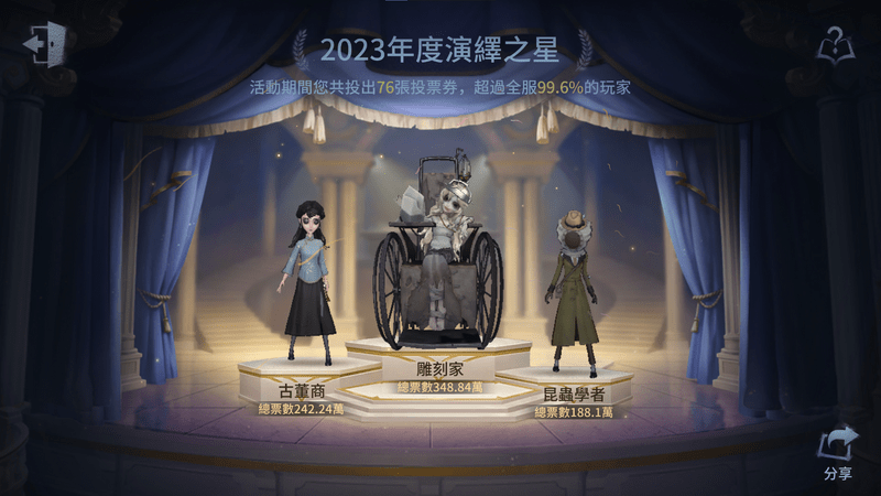 所有偵探都可為獲得2022“最佳演繹”的稱號的角色投票選出專屬演繹動作。該動作上架商城後,所有偵探都可以折扣價購買。