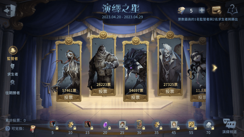 | 5 | 【臨時身分】求生者(1天) |