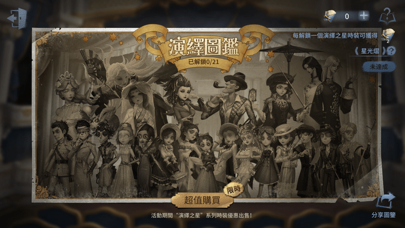 演繹圖鑑可回顧往期的演繹之星角色。如果擁有往期的演繹之星時裝,還可解鎖對應圖鑑立繪,並額外獲得【繆斯信】。