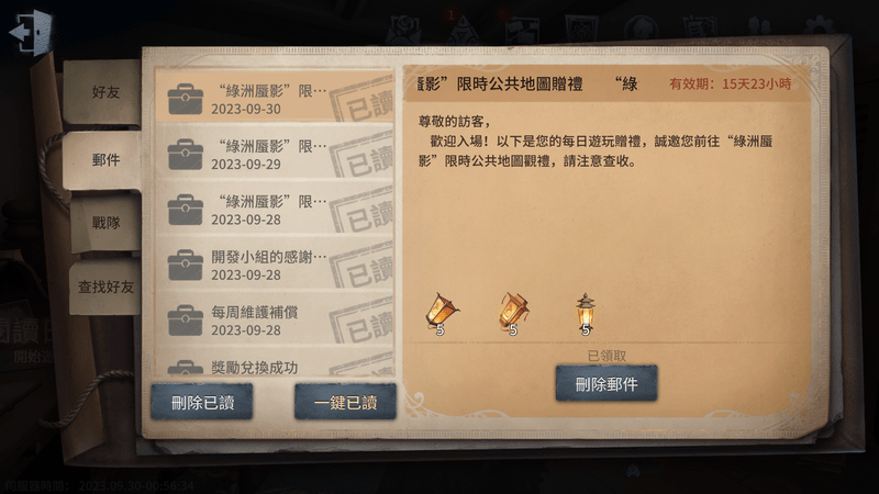 每日郵件發放/可購買的活動道具
